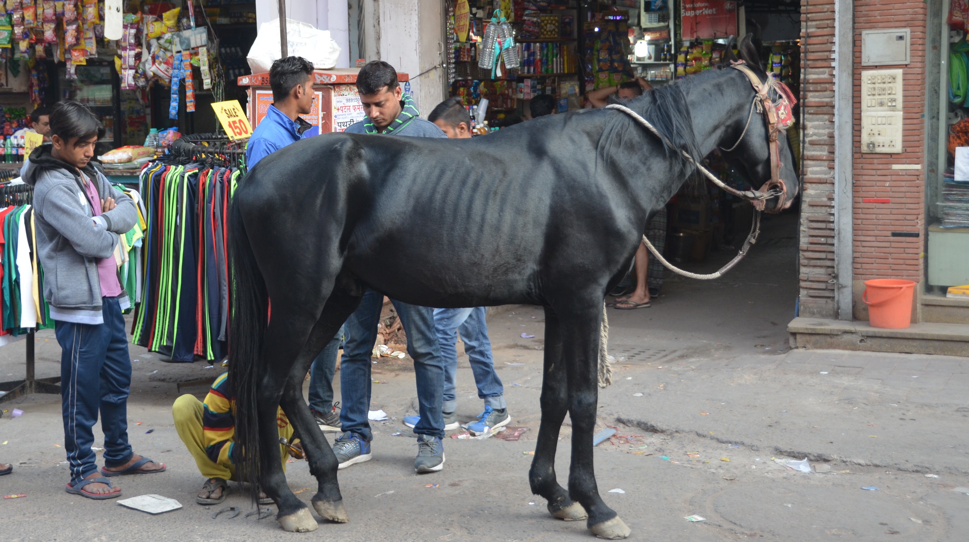 W ogóle w Indiach mocno się obcuje ze zwierzętami. Krowy to na pewno numer jeden ale są i pracujące osły, ciągnące wozy wychudzone konie lub bawoły (te nie są święte). Utrapieniem sprzedawców owoców są złośliwe i zwinne makaki czyhające na moment ich nieuwagi. Słonie i wielbłądy w Rajasthanie to tez nic niezwykłego, podobnie jak szybujące nad fortami orly. Kozy to bardziej temat na obrzeżach miast. No i psy. Ale być psem w Indiach to kiepski wybór. Panuje ogólne przekonanie, ze pies w swoim poprzednim życiu pałał się kradzieżami i teraz ma za swoje. W konsekwencji pies znajduje się na najniższym szczeblu drabiny społecznej Indii i spotyka się z ogólnym potępieniem.