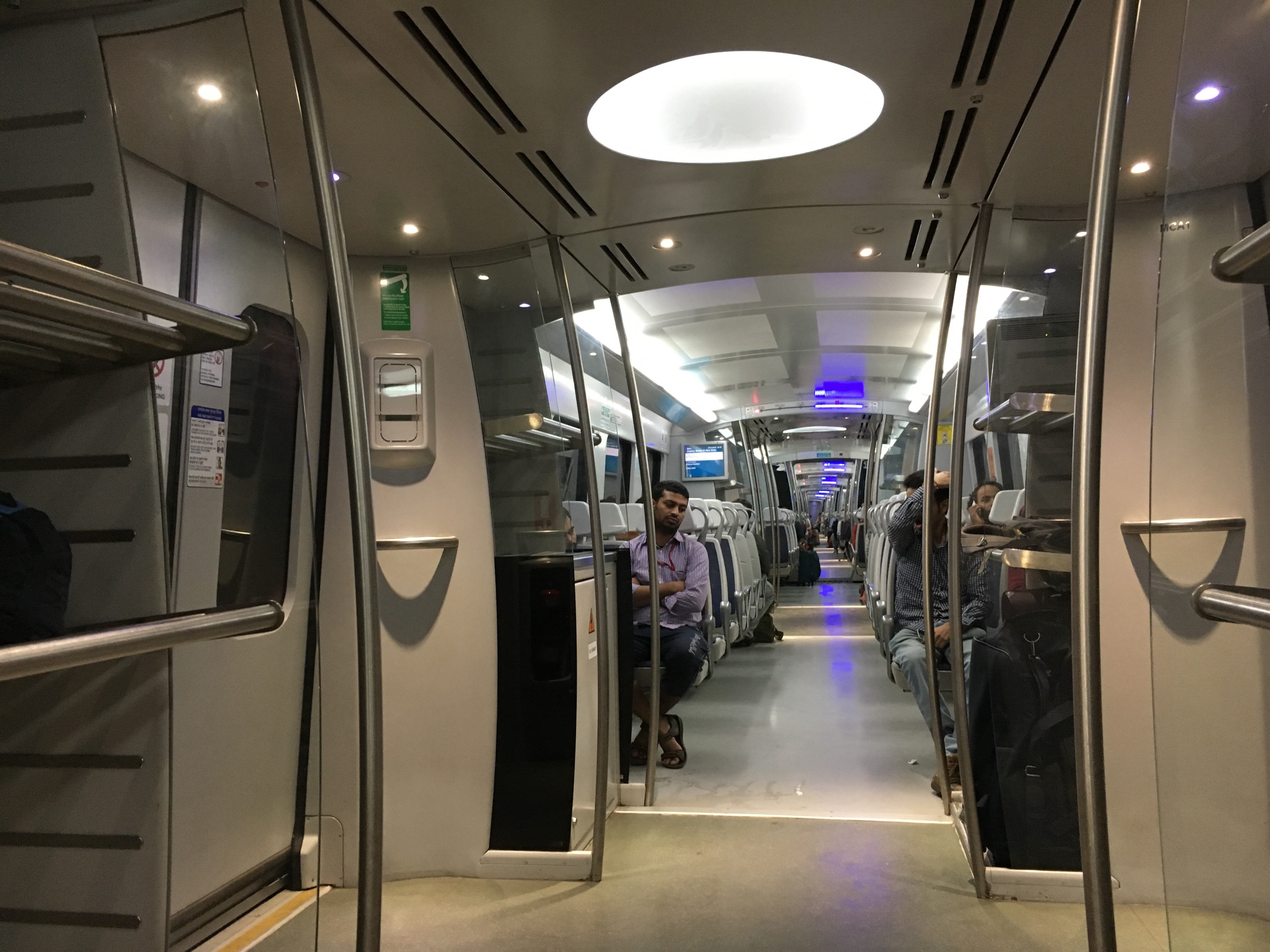 Z lotniska do centrum prowadzi oddzielna linia metra co oznacza, że podróżuje się komfortowo. Oczywiście sytuacja nieco się zmienia kiedy jeździ się po centrum i to nie daj Boże w godzinach szczytu. Po pierwsze kolejki do wejścia na stacje (zawsze security check jak na lotnisku), w przejściach rzeki ludzi płynące w różnych kierunkach, zablokowane ruchome schody a na koniec trzeba wpłynąć do wagonu. O miejsce trzeba zawalczyć i dać się wcisnąć napierającemu z tylu tłumowi. Z wysiadaniem podobnie: na wybranej stacji pozwólmy się wypluć na peron co na pewno się stanie jeżeli jest to uczęszczana stacja. A prawdopodobnie tylko na takich stacjach będziemy. Warto mieć na względzie rownież to, że w indyjskim metrze pierwszy wagon zarezerwowany jest tylko dla kobiet. Biorąc pod uwagę tłok oraz fantazję Hindusów można sobie wyobrazić dlaczego.