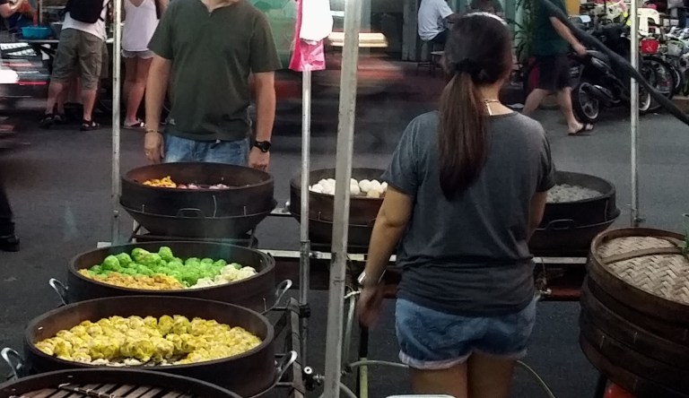 No właśnie, Penang to stolica malezyjskiego jedzenia. Ilośc miejsc z jedzeniem jest zatrważająca i każdy znajdzie coś dla siebie. W hotelu na pewno dostaniemy specjalne mapo-przewodniki pomagające w zrozumieniu tutejszych specjałów i znalezieniu miejsc je serwujących. W Georgetown dość popularne są tzw. hawkers centers, czyli mówiąc po polsku food courty. Doskonale miejsce do zjedzenia wieczorem – w jednym miejscu jest skupisko stoisk oferujących różnorodna kuchnie. Na środku wspólne stoły. Wszystko świeże, w dobrych cenach, szybka obsługa i zawsze spory tłok. Niestety rownież często muzyka na żywo w wykonaniu rodem z programów animacyjnych dla klientów all inclusive w Egipcie. Ze sprawdzonych miejsc godne polecenia Red Garden w części zachodniej, dwa przybytki nad brzegiem od północy oraz spore centrum przy osiedlu domków na palach (mniej więcej na przedłużeniu Armenian Street).