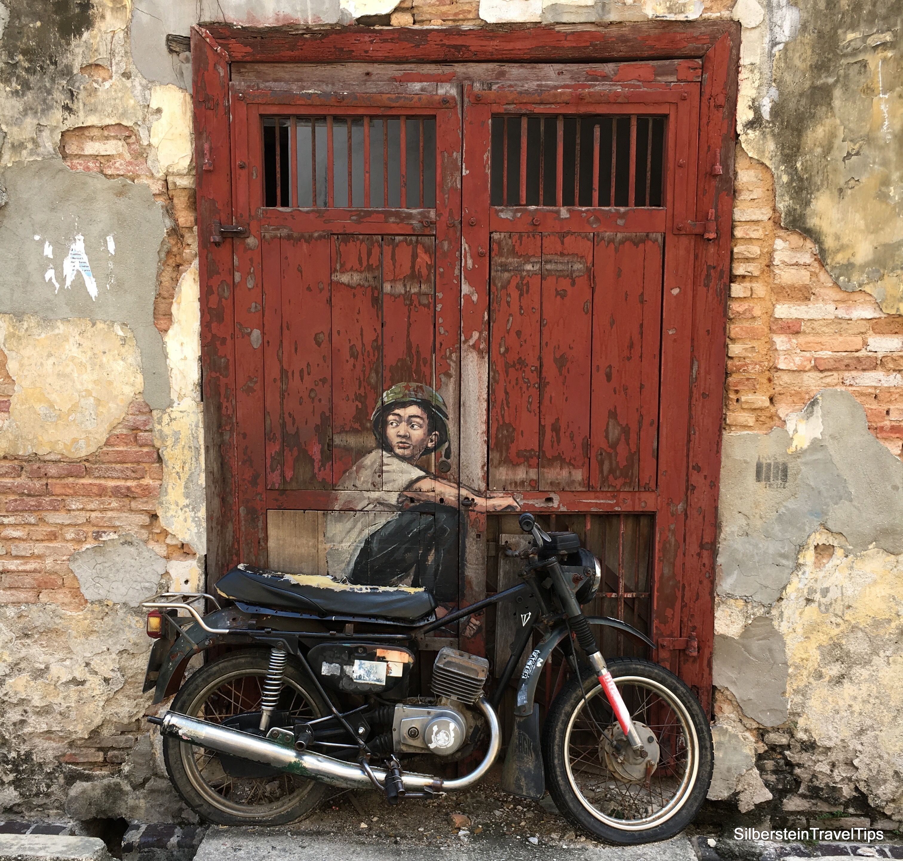 Georgetown słynie jeszcze z jednej ciekawostki a mianowicie z dość znacznej kolekcji murali. Są one rozrzucone po całym mieście chociaż większość znajduje się w dzielnicy chińskiej. Są zaznaczone na wielu mapkach wiec łatwo można zabawić się w muralowy geocaching. Nie są to tylko typowe malowidła ścienne lecz często instalacje będące połączeniem przedmiotów i rysynku na ścianie. Ich popularność zawdzięczamy Litwinowi Zacharevicowi, którego ochrzczono malezyjskim Banksy’m, po tym jak w 2012 stworzył kilka pierwszych instalacji z okazji odbywającego się w Penang festiwalowi.