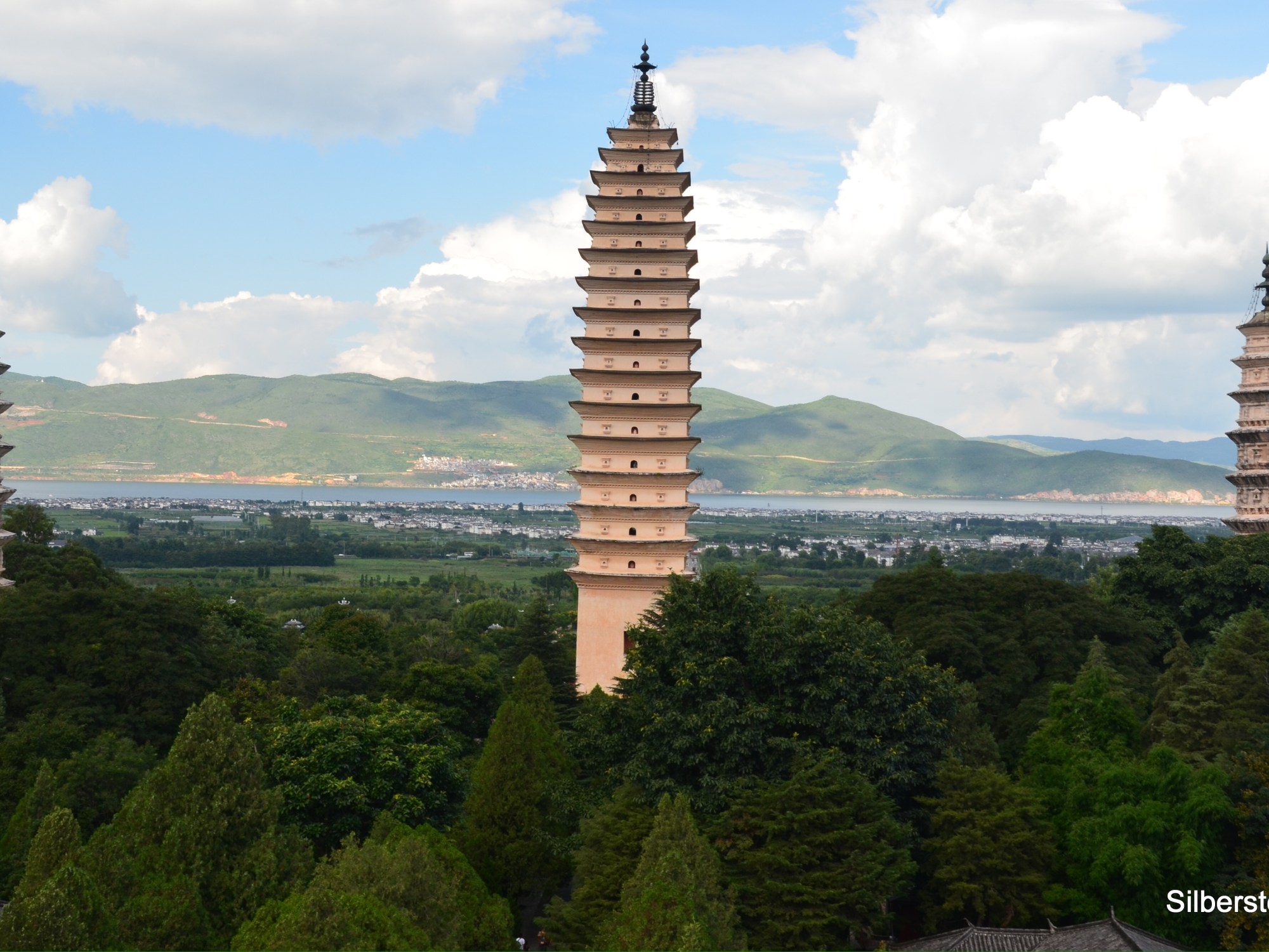 Na wschód od Dali jest jezioro Erhai, kolejna atrakcja turystyczna. Najpopularniejsza opcją jest krótki rejs statkiem na drugi brzeg połączony z wizytą w parku, którego centralnym punktem jest wysoka pagoda. Najłatwiej jest wsiąść na statek w Caicun (dojazd autobusem 4 spod West Gate). Bilet na rejs 180Y, zero komunikacji po angielsku i jedyna nadzieja, że pomoże ktoś z pasażerów. Po zwiedzeniu parku z pagodą (wystarczy godzina) można wrócić dowolnym statkiem pamiętając, że ostatni odpływa o 15.