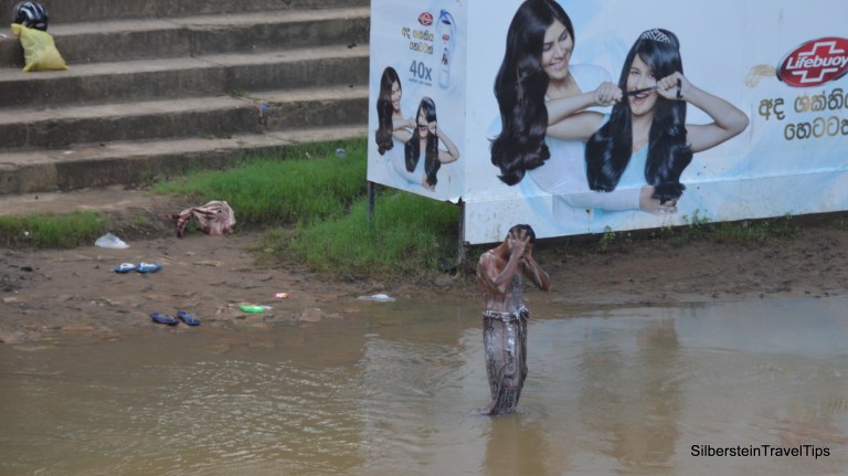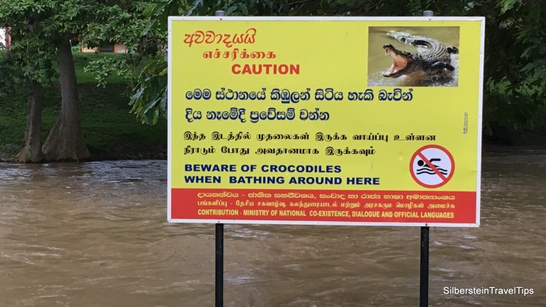 Mahinda successfully passed through the stalls and reach the sacred river. This is the place where many (MANY) pilgrims take the spiritual ablution before entering the temple sector. They just go into the river to make the ritual of the ablution. Nothing wrong with that, there are even special shelters on the river bank to facilitate the clothes changing. Just to be precise: if you are a male if not please take the river bank on the other side of the bridge where there are no special facilities. The pilgrims, all of them are expected to take the ritual before heading to the temple for “puja”, means the evening (usually) offering celebration. But why, the hell there is a huge sign informing that there are crocodiles in the river which you need to be aware of??