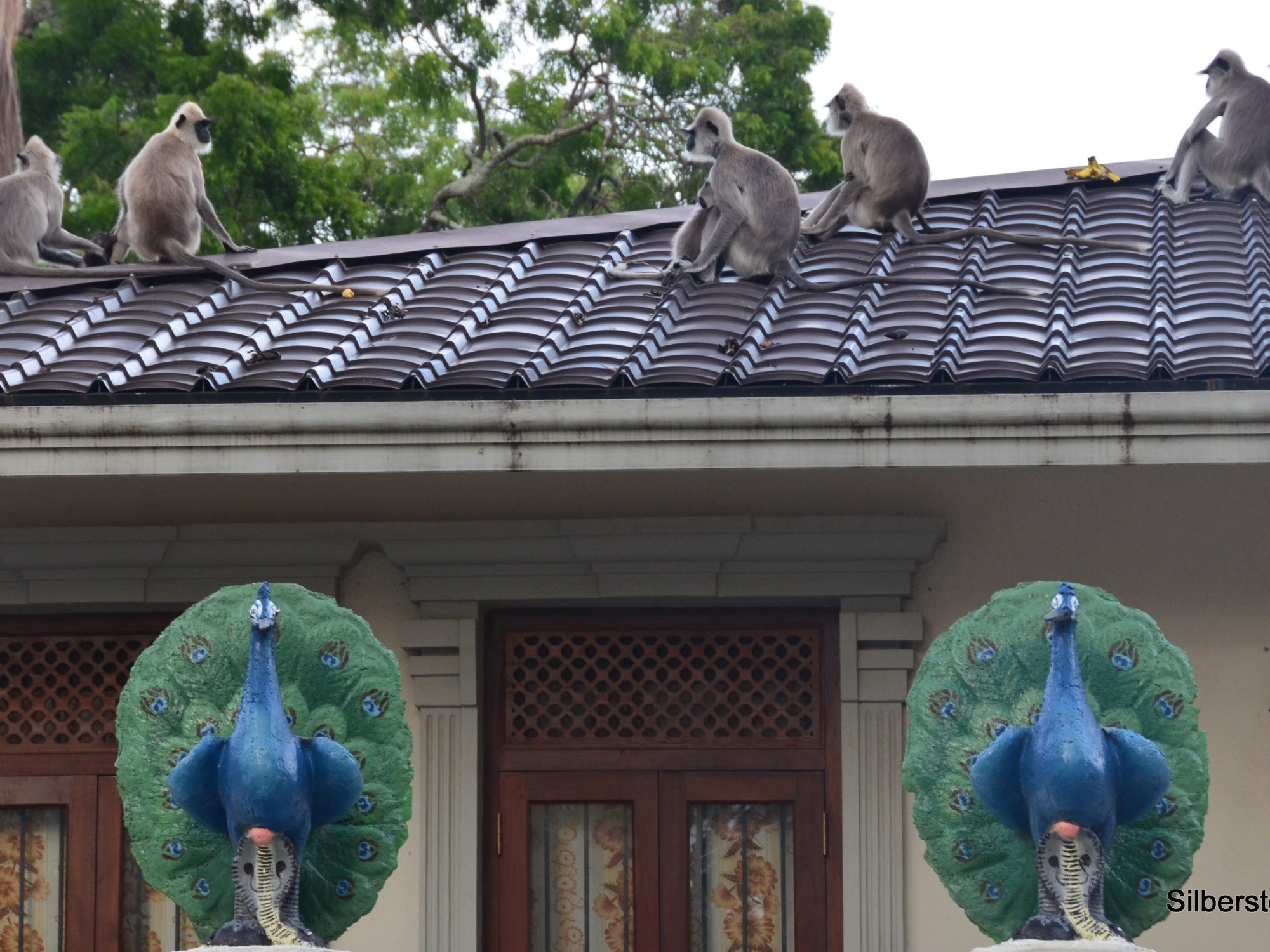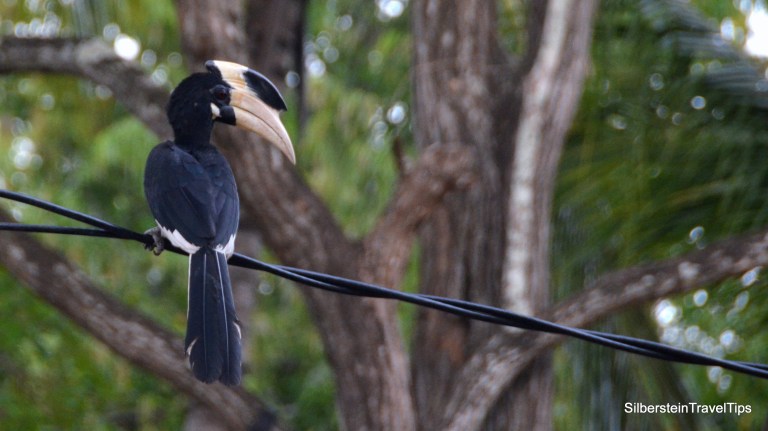 By the way, Mahinda recalled his unforgettable experience in the Yala National Park. (By the way, being so critical on Yala safari experience I need to say that Udawalawe National Park was really something different and worth to be recommended- please take a look here.) There, he had been looking desperately to see some representative of fauna. Here, just above his head, in the middle of the pilgrimage center the Sri Lankan Grey Hornbill was peacefully sitting on the wire. Yes, Mahinda recalled his Yala guide-driver to call him once: “Mister, hornbill, there in the bushes, photo photo please. Happy, Mister?” Now, Mahinda was really taking his time to observe the bird.