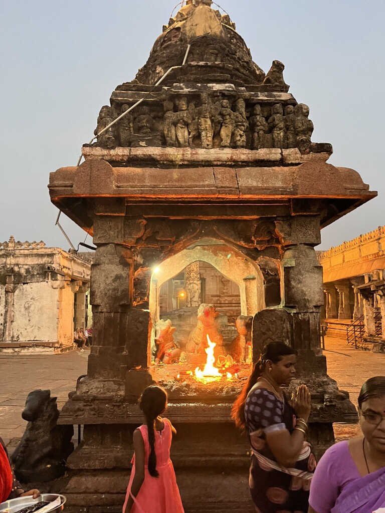 Praktycznie większość świątyń w Hampi to muzea. Lub jak mówią tutejsi: „Sir, no God here, Sir”. Bez wątpienia prawdziwą żywą świątynią jest Virupaksha poświęcona Sivie. Codziennie rano i wieczorem odbywa się tutaj puja, czyli modlitewna ceremonia. Z tego powodu, ze to nie muzeum można tu wejść jedynie na bosaka. I warto uważać, bo na posadzkach jest ślisko od oliwy z lampek ofiarnych. Rozumiem, ze może ci się to nie podobać ale jednym z bardziej słynnych lokatorów świątyni jest słonica Lakshmi, która za drobną opłatą może pobłogosławic cię trąbą. Chętnych nie brakuje. Aha, nie mówiłem. Krowy tez tam są zawsze. A na gopurach zobaczysz siedzące małpy oraz sowy.