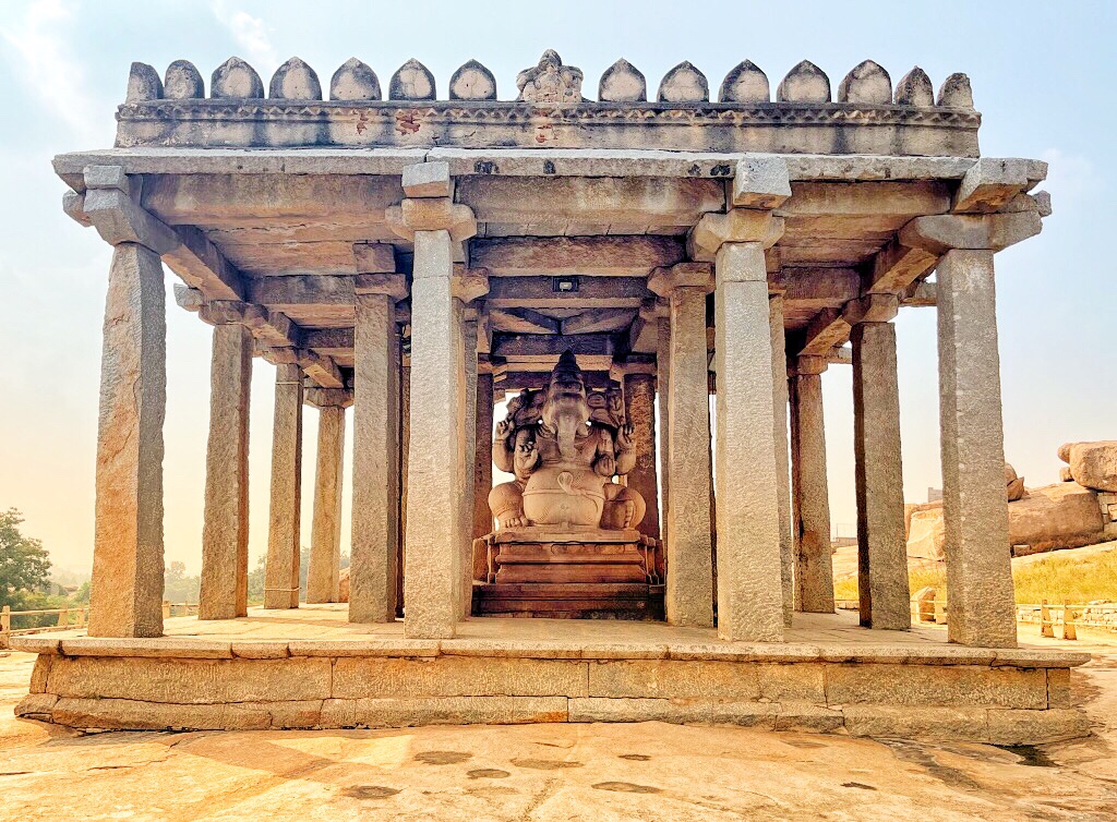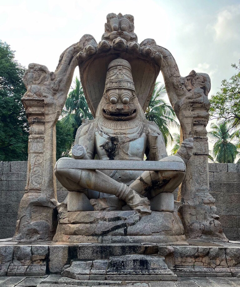 Jadąc dalej na południe drogą w kierunku Kamalapury, największej tutaj miejscowości mijamy świątynie Krishny naprzeciw, które są pozostałości bazaru z kolumnada. Chwile dalej mamy kolejny wielgachny posag tym razem inkarnacji Vishnu pod postacią Narashimy. A tuż obok, dla chętnych, potężny Siva lingam.