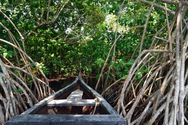 Gęsta siec kanałów tworzy istny labirynt. Dzięki wąskiej łódce jesteśmy w stanie dostać się w sam środek namorzynowych zarosli i przeciskac się między gałęziami. Patrząc na googlemaps można odnieść wrażenie, że wyspa de facto składa się głównie z wody poprzecinanej siecią grobli i małych wysepek. Praktycznie już po paru minutach spływu ciężko jest zachować orientację w tym labiryncie.